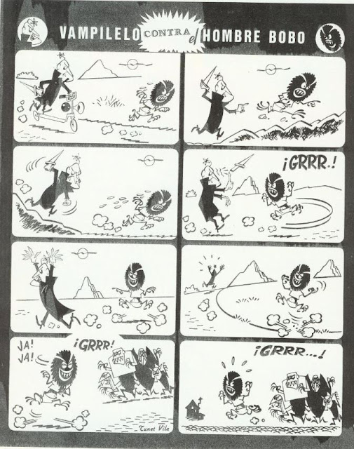 Hace unas semanas supimos de la muerte de Tunet Vila, un autor que por alguna razón siempre despertaba mi simpatía cuando veía su nombre en los tebeos de Vértice, y no solo por las entrañables historietas de Tumbita. Años más tardé muchos descubrimos, por aquí y por allí, que era un personaje pintoresco envuelto en una leyenda de anécdotas, además de actor secundario, decorador y mil cosas más. Como homenaje escribí un texto en Canino: Tunet Vila, más allá de Tumbita, al que les remito pues ahí tienen la historia explicada con detalle. La cosa es que pasé unos cuantos días a la caza de su nombre y/o rostro en películas, además de reunir información e historietas diversas. Parte del material recopilado sirvió para ilustrar el artículo de Canino, pero mucho quedó fuera, así que nada mejor que recuperar la faceta de archivo de curiosidades del Blog Ausente con un post reuniendo todo lo demás.